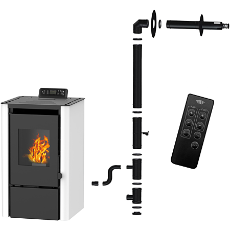 Poêle à granulés étanche Sannover Flavia 9.5 kW Blanc + Kit d’installation Complet