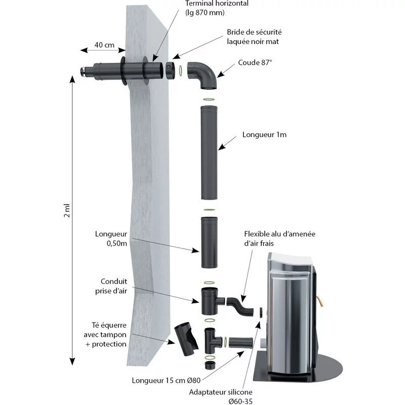 Pack poêle à bois Eliot Godin Sortie dessus 8 Kw