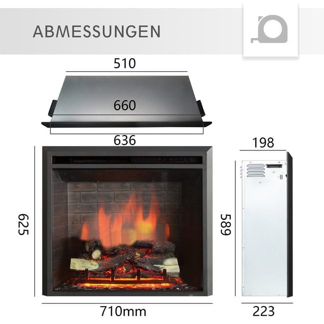 BALDERIA cheminée électrique Calida 26″ | Cheminée mural avec flammes 3D, chauffage 2000W, éclairage LED | Télécommande, minuteur, thermostat