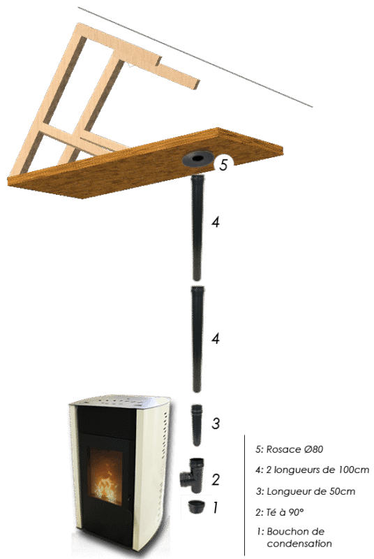 Kit de fumée de 80 mm pour évacuation des fumées poêles à granulés