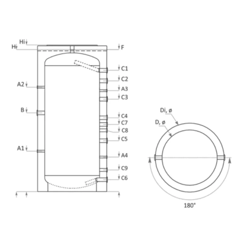 En forme de cylindre en métal et extrêmement bien isolé (la doublure isolante mesure 20 mm), ce ballon tampon permet de couvrir une importante surface de chauffe.