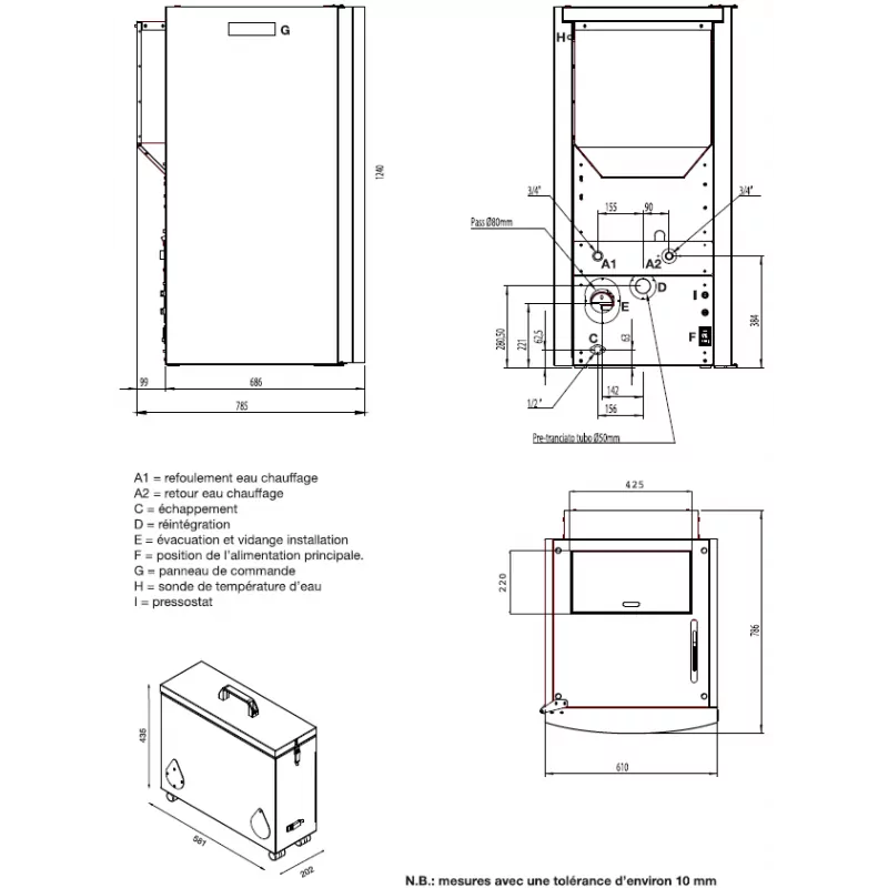 - un kit manométrique (comprenant la soupape de sécurité, le purgeur et le manomètre)