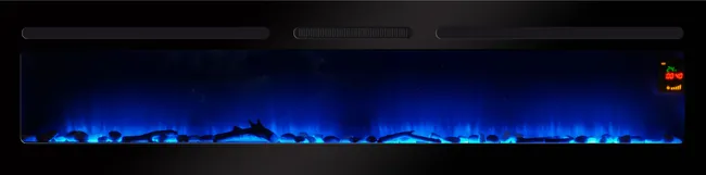 Apportez une touche spectaculaire à votre intérieur avec la cheminée électrique encastrable Élysée 5XL 182 cm Chemin’Arte. Son effet flammes ultra-réaliste, basé sur une technologie LED 3 couleurs Chemin’Arte, vous permet de créer une ambiance chaleureuse et personnalisable selon vos envies. Dotée d’un thermostat réglable via un écran LCD discret, cette cheminée assure un confort optimal en maintenant une température idéale. L’intensité des flammes est ajustable, et le chauffage peut fonctionner indépendamment des flammes, vous permettant de profiter d’une atmosphère apaisante toute l’année (Consommation 10W en mode flammes seul). Avec une puissance de 2000W, elle chauffe efficacement des pièces jusqu’à 30 m², tout en garantissant une protection contre la surchauffe. Son système de programmation horaire journalière et hebdomadaire permet une gestion automatique du chauffage selon votre rythme de vie. Elle peut être fixée au mur à l’aide des supports fournis ou encastrée totalement pour un rendu plus épuré. La télécommande incluse permet un contrôle à distance, vous offrant un confort d’utilisation optimal. Pratique et sans contrainte, cette cheminée fonctionne sans bois, sans cendres et sans ramonage, tout en ne produisant aucune émission de CO2.