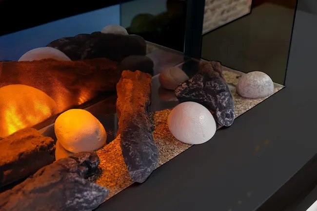 Effet flammes LED Chemin’Arte ultra réaliste, sans risque de brûlures • Le chauffage et l’effet Flammes LED peuvent être utilisés séparément (Consommation de 10W en mode flammes) • Thermostat de réglage de la température via l’écran LCD (s’éteint après réglage) • Programmation Horaire Journalière/Hebdomadaire • Puissance du chauffage 2000W, protection contre la surchauffe • Télécommande pour réglage à distance • Livrée assemblée, se fixe au mur à l’aide des supports fournis • Aucune émission de CO2 – Zéro entretien (Pas de bois, de cendres, d’odeurs et de ramonage)