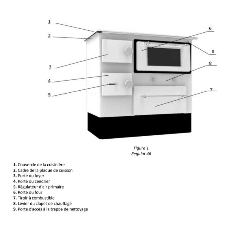 Caractéristiques techniques de la Cuisinière à bois AlfaPlam Regular 46 Eco 8 Kw