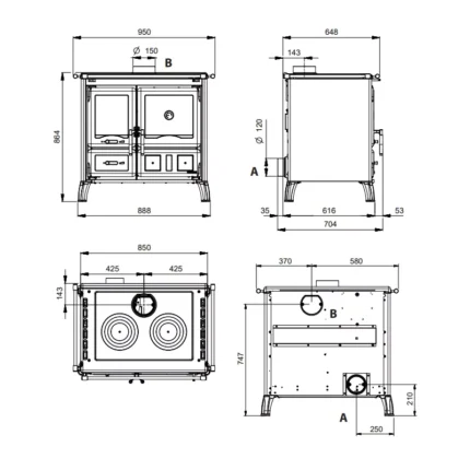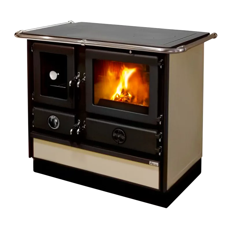 La Super Thermo Magnum est une cuisinière à bois hydro conçue pour chauffer toute la maison tout en offrant une cuisson au feu de bois précise et agréable. Avec une puissance totale de 17 kW, répartie entre 10,1 kW transmis à l’eau et 6,2 kW à l’air ambiant, elle alimente jusqu’à 10 radiateurs et peut être couplée à un ballon tampon ou un plancher chauffant. Fiable, robuste et économique, elle constitue une solution complète et durable pour les foyers qui veulent tout faire au bois.
