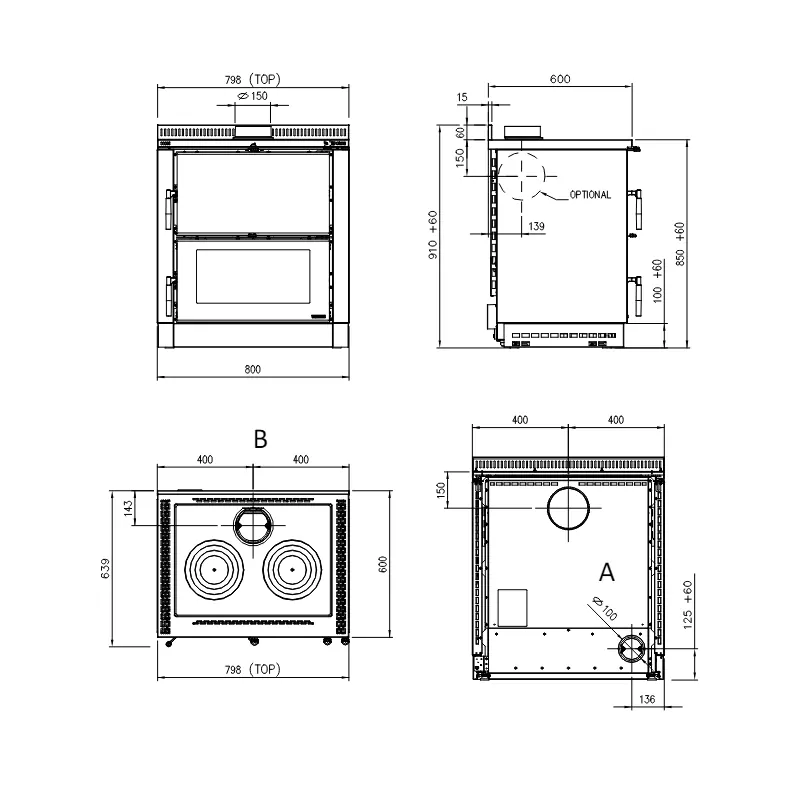 La Verona XXL propose des sorties de fumées supérieures alignée, postérieure et latérales pour s’adapter à différents aménagements.