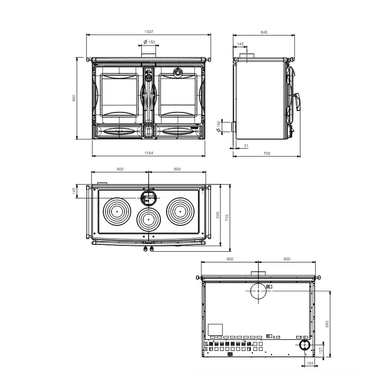 Diamètre sortie des fumées (mm): 150
