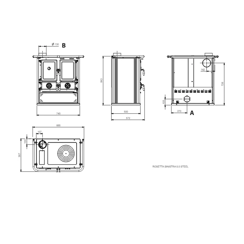 Caractéristiques techniques de la Cuisinière à bois La Nordica Rosetta Sinistra 5.0 Steel – 7.9 Kw