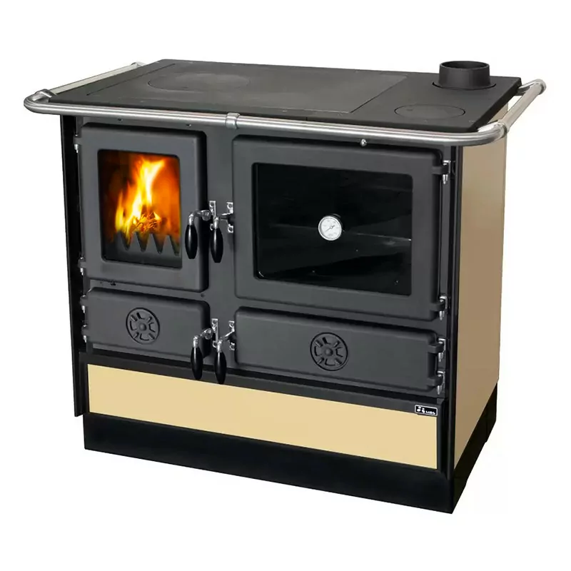 La cuisinière est équipée d’un système de double combustion : l’air secondaire permet de brûler les gaz résiduels issus de la première combustion, améliorant ainsi le rendement tout en réduisant les pertes de chaleur. Cela se traduit par moins de consommation de bois pour un confort identique, et un foyer plus propre au quotidien.