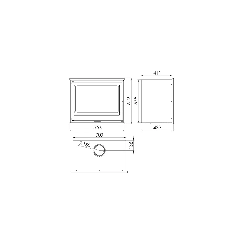 Les dimensions du foyer sont de L756 x H612 x P433 mm, ce qui permet une intégration facile dans différents types d’espaces tout en offrant une capacité de chauffage importante. La conception de qualité assure une longue durée de vie et une performance fiable.