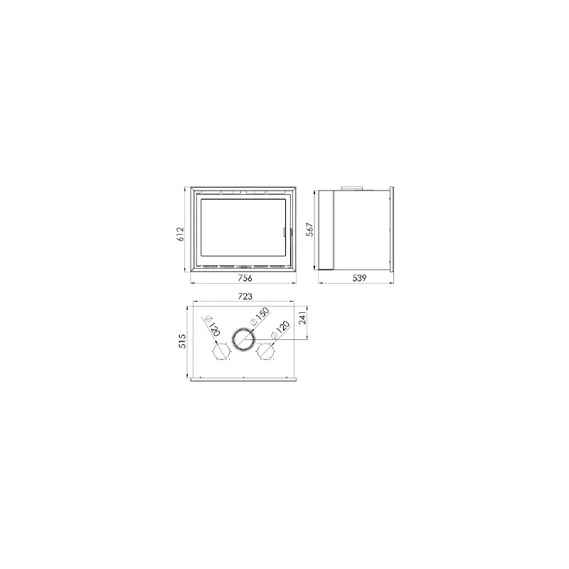 Il peut accueillir des bûches de 60 cm et ses dimensions (H612 x L756 x P539 mm) permettent une intégration facile dans divers types de cheminées.