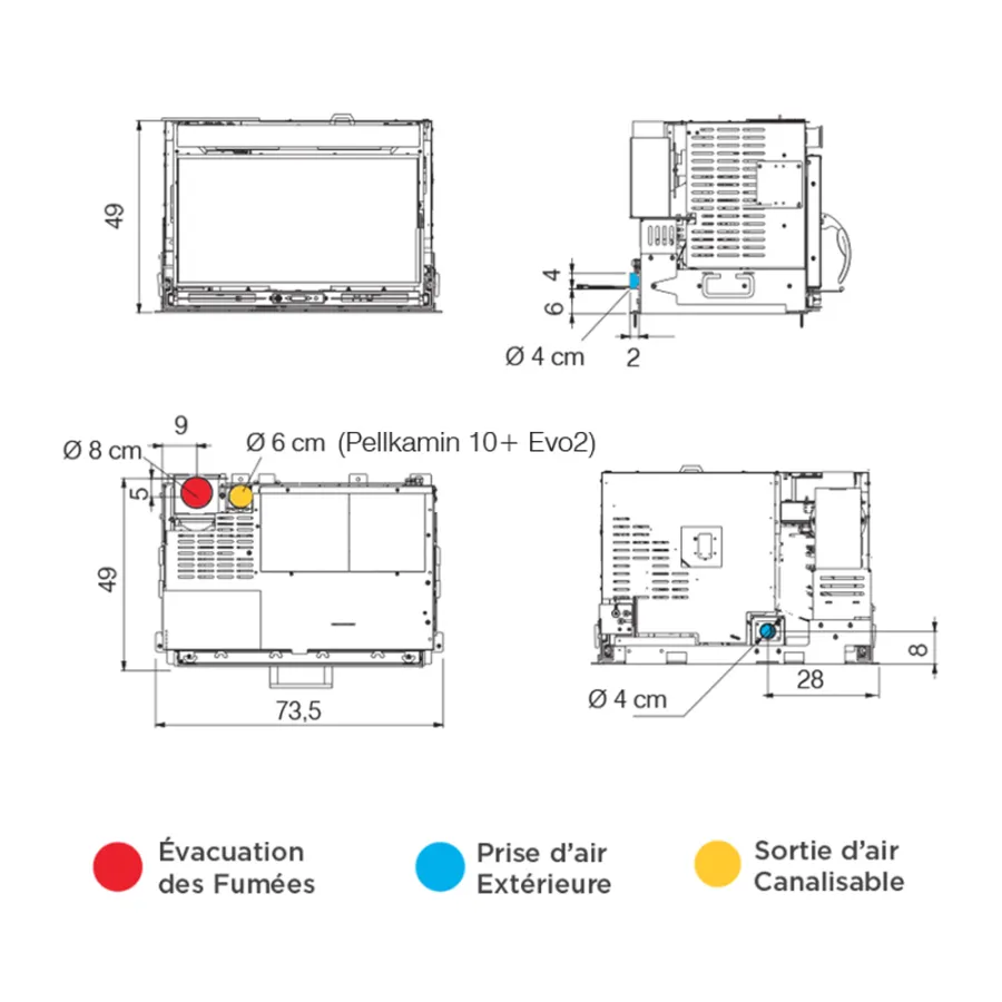 Insert à granulés EDILKAMIN Pellkamin 8 Evo2 Puissance 8kW A+ Sortie Fumée Supérieure Ø8 cm
