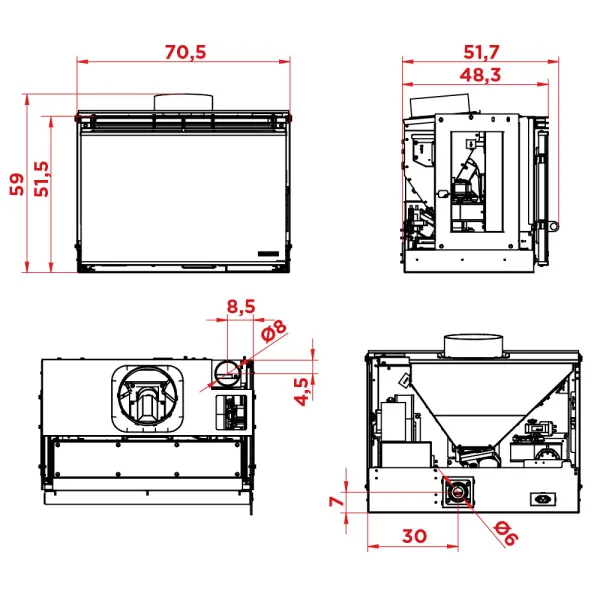 DONNÉES TECHNIQUES DE l’Insert à granulés Palazzetti Ecofire A70S – 9 kW