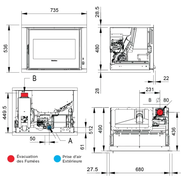 Ø évacuation fumée : 80 mm S