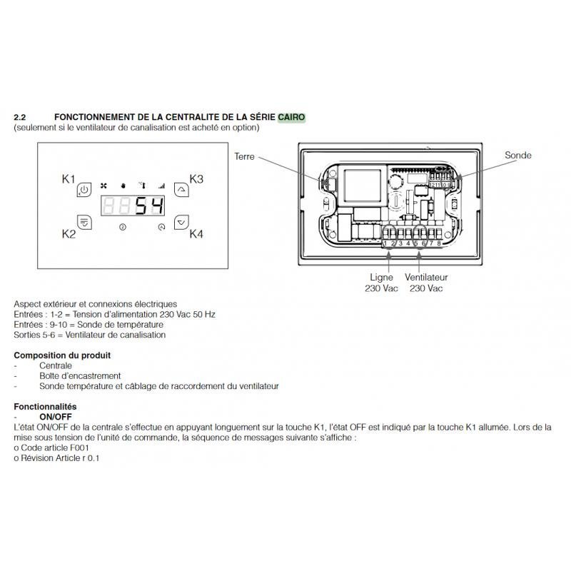 – 1 ventilateur + 1 écran tactile en verre pour une régulation manuelle ou automatique des TRS/MIN
