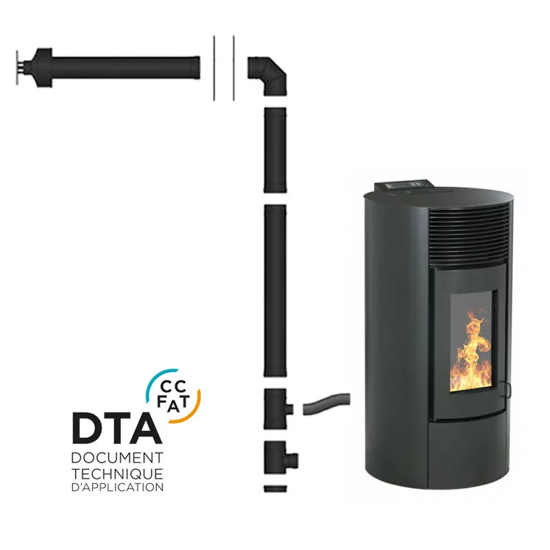 Pack poêle à granulés étanche Segreto Plus + Kit conduits concentrique sortie arrière – 12 Kw