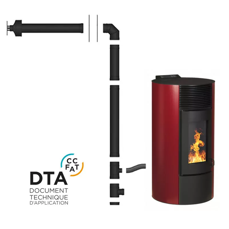 Pack poêle à granulés étanche Segreto Plus + Kit conduits concentrique sortie arrière – 12 Kw.