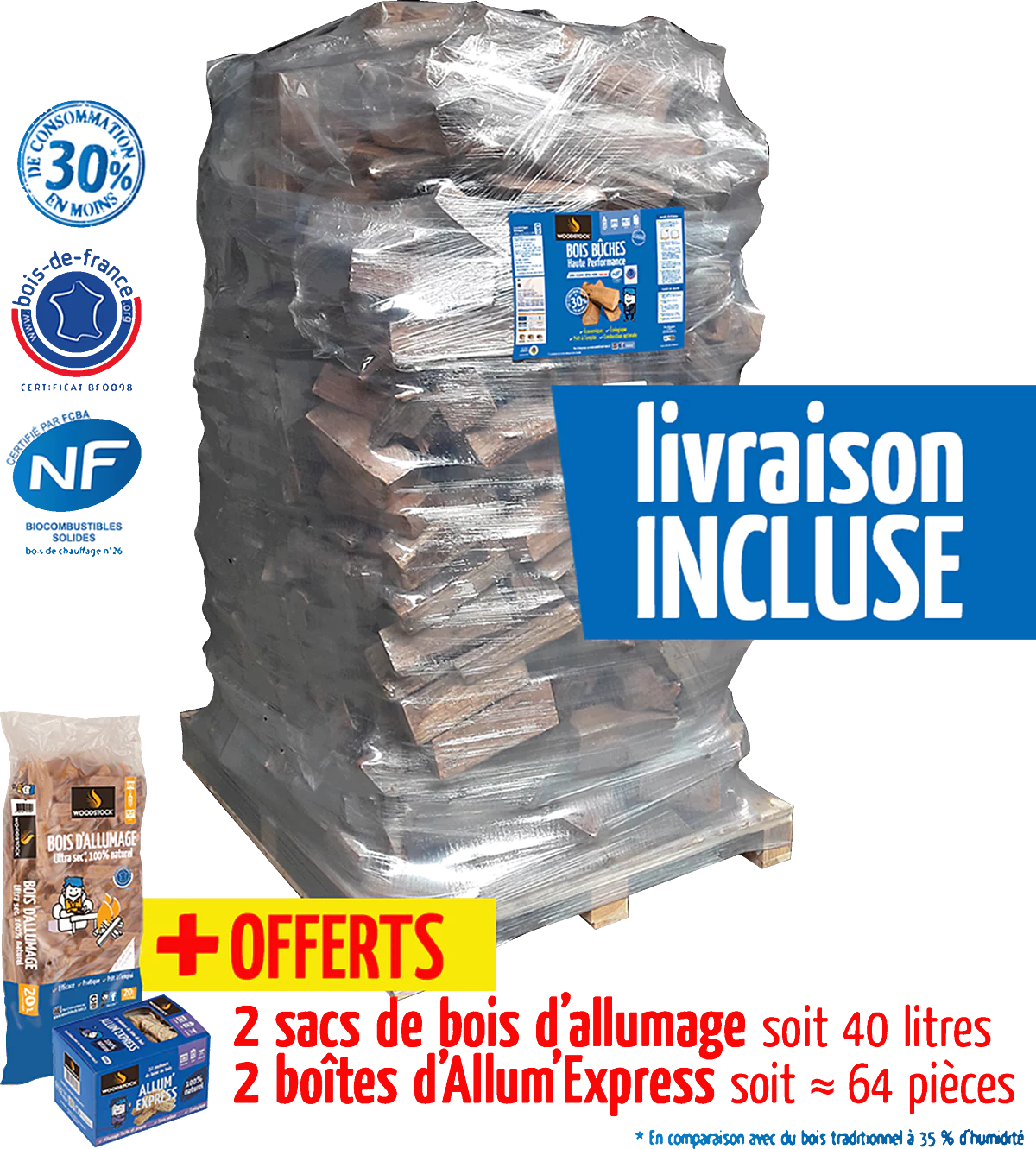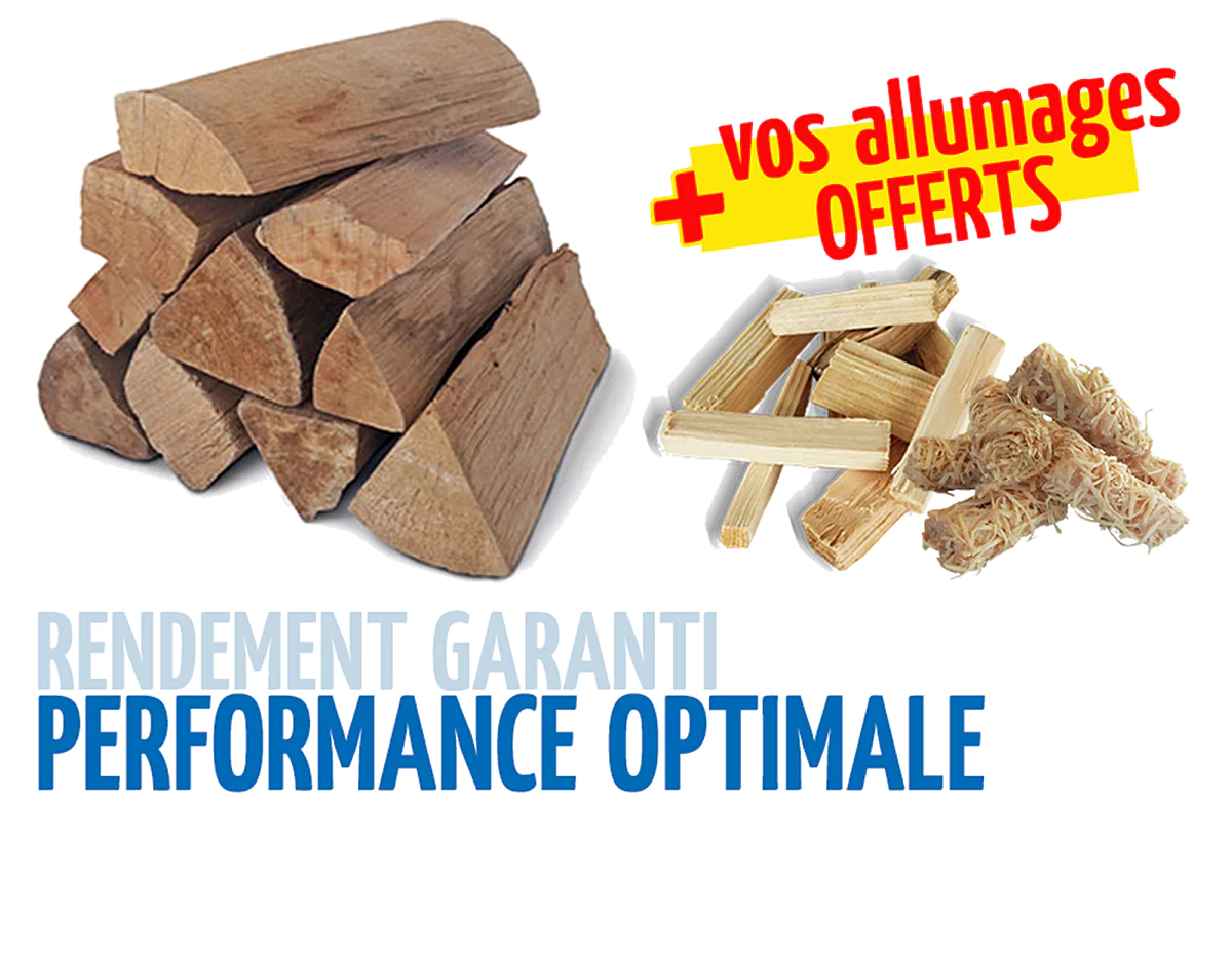 Bûches haute performance séchées à moins de 20% d’humidité, partiellement écorcées sans mousse ni lichen. Fabriquées en France .Conditionnées en ballot de 2000 dm3, les bûches sont prêtes à l’emploi +2 boîte de 32 rouleaux de laine de bois imprégnés de cire végétale. + 2 sac de 20L de Bois d’allumage extra sec. Stockage garanti propre et sans poussière.
