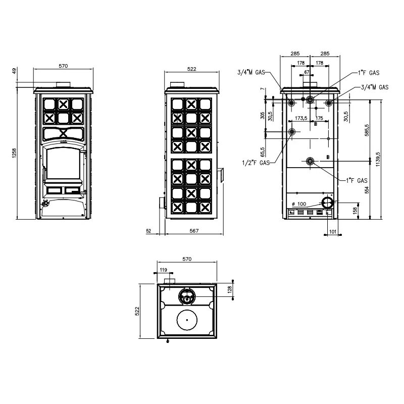 Caractéristiques techniques du Poêle à bois bouilleur La Nordica Loriet S DSA – 17 Kw