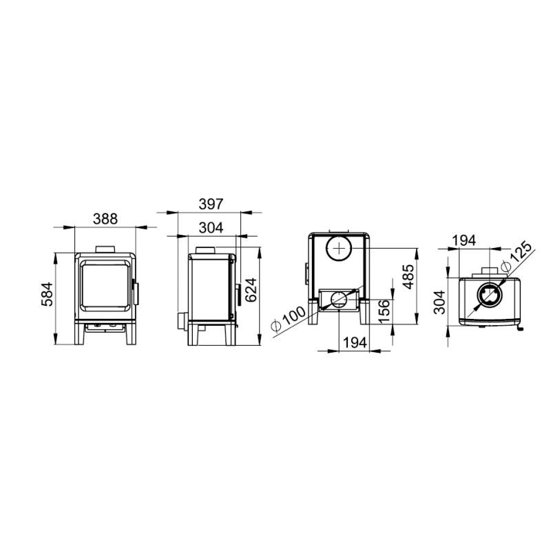 - Sortie des fumées : 125 mm (dessus ou arrière).
