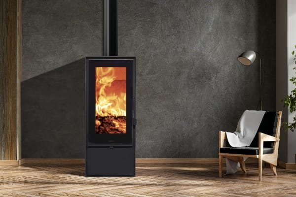 Poêle à bois de style moderne-contemporain et conforme aux normes Ecodesing. Son design est idéal pour les pièces de moyenne et grande taille, dimensions H1010 x L473 x P427 mm. Capacité pour les bûches jusqu’à 50 cm, double corpps en acier 6+3mm, revêtu en vermiculite.