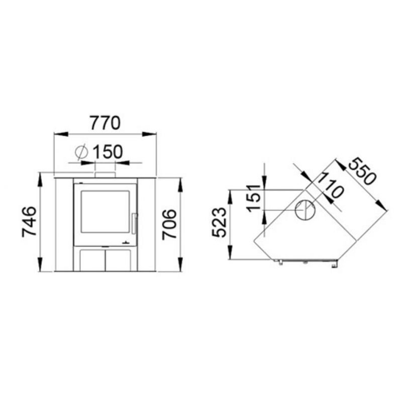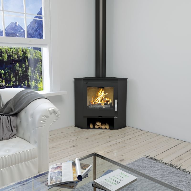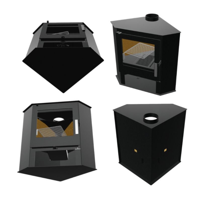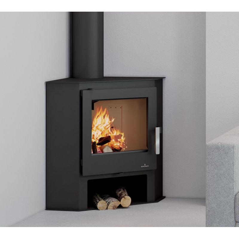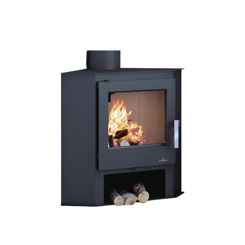 Son petit espace situé en dessous du foyer vous permettra de ranger vos bûches de bois et son design fait de lui le poêle à bois d’angle idéal !