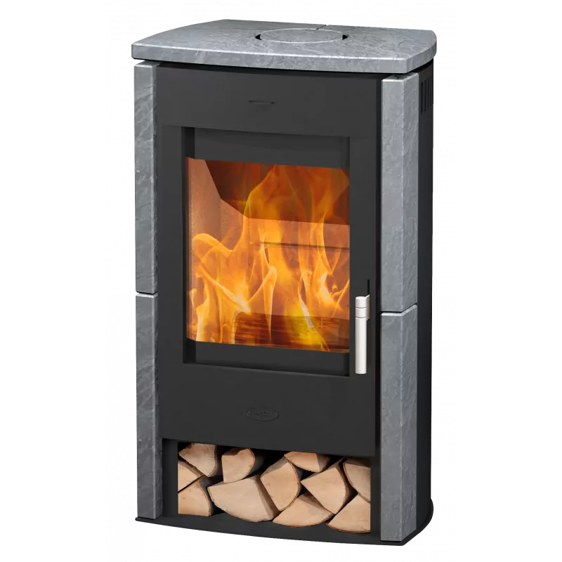 • Pierre ollaire: Ce poêle est équipé sur les côtés et le dessus d’une pierre ollaire, une pierre thermique qui emmagasine la chaleur et la diffuse pendant une longue période.