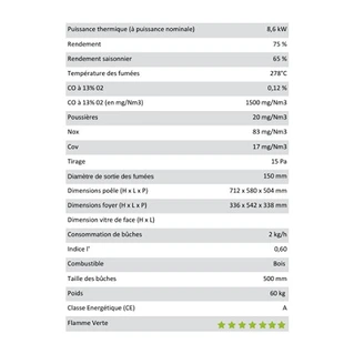 - Ce poêle est certifié Flamme verte 7 étoiles.