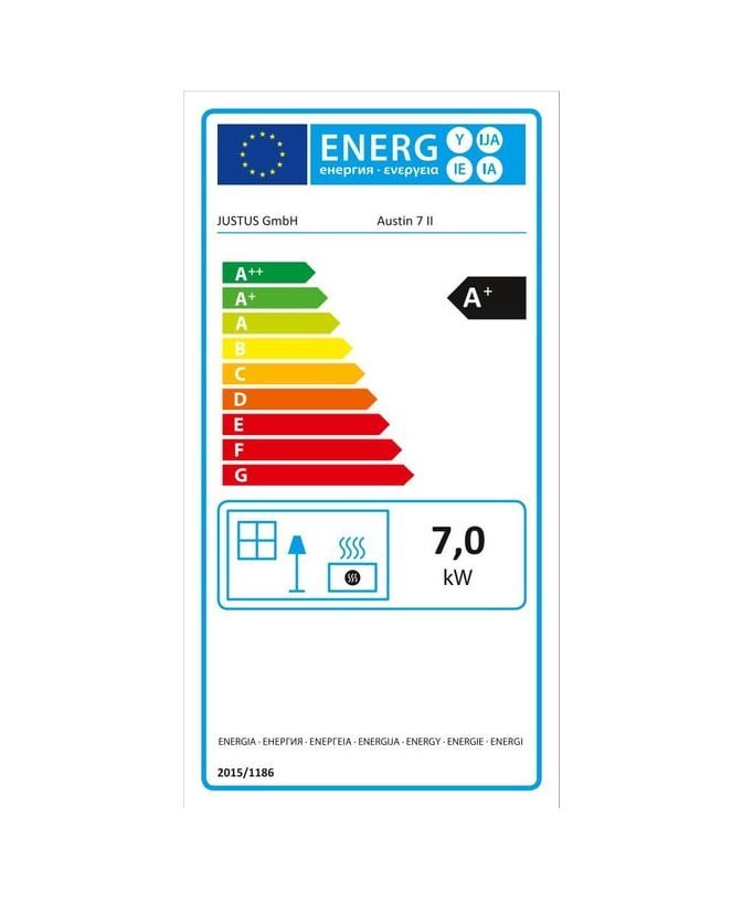 Poêle à bois JUSTUS Austin noir 7 kW.