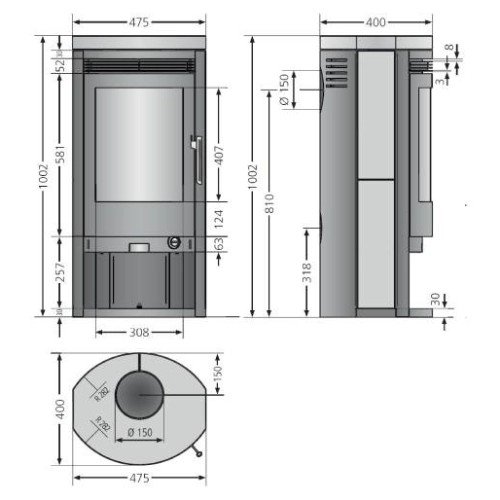 | Hauteur au raccordement de l’air de combustion (centre) (mm): | 318 |