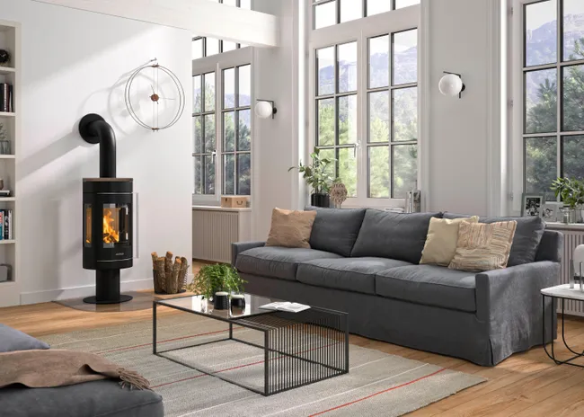 Poêle à bois JUSTUS Meva noir / rouge 5.5 kW.