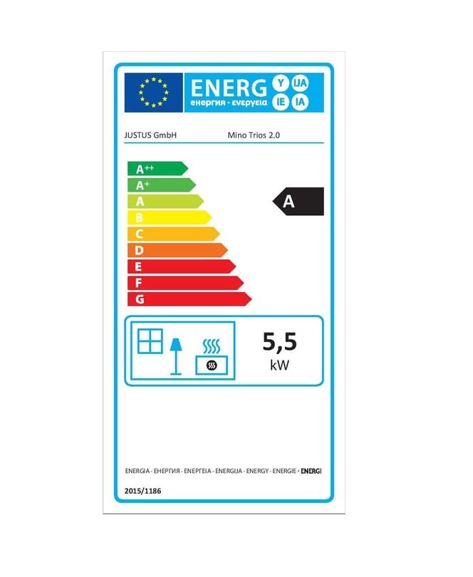 Poêle à bois JUSTUS Mino trios 2.0 noir 5.5 kW.