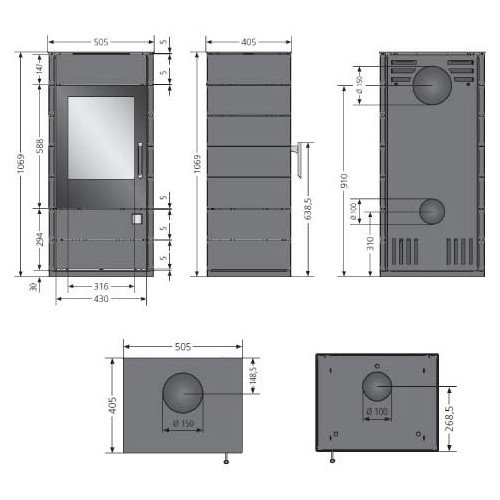 | Hauteur au raccordement du tuyau de fumée (à l’arrière) (mm): | 910 |