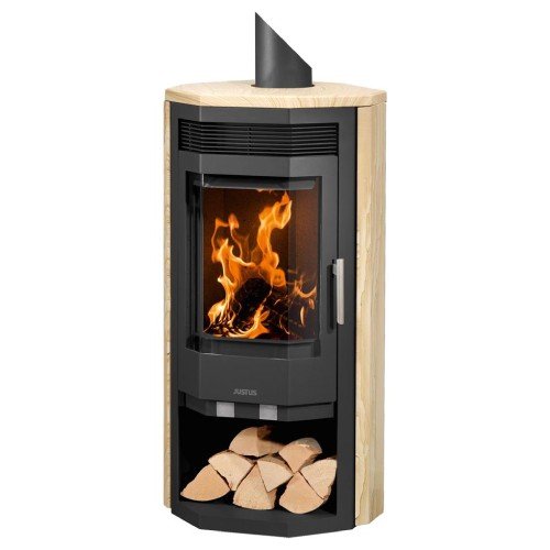 Grâce à sa conception compacte, le Justus Usedom peut être utilisé aussi bien seul que dans l’angle d’une pièce. Avec un corps de poêle de seulement 115 cm de haut, comprenant une plaque de recouvrement et une chambre de combustion relativement petite, le poêle est particulièrement adapté aux petites pièces de rangement afin de faire ressortir le jeu impressionnant des flammes derrière la grande vitre panoramique. Cependant, les bûches nécessaires à cette fin ne doivent pas dépasser 33 cm de longueur.
