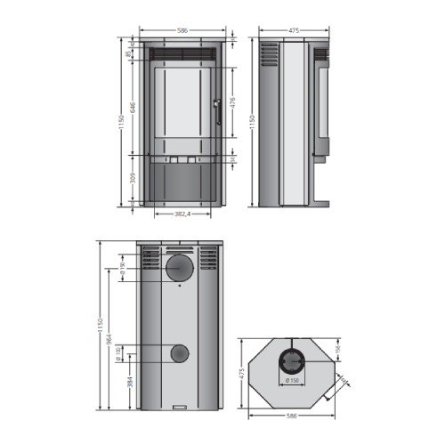 | Hauteur au raccordement de l’air de combustion (centre) (mm): | 384 |