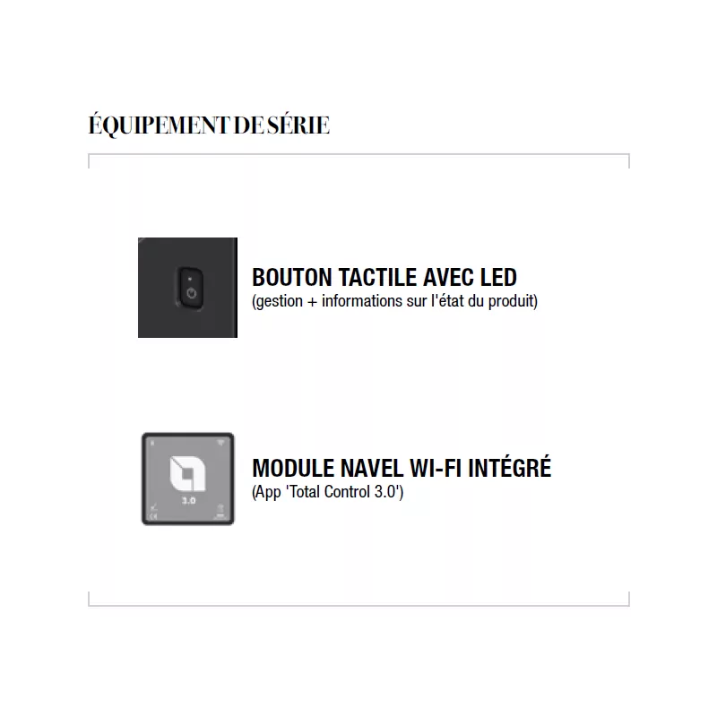 Grâce à son système Wi-Fi intégré, le Larissa vous offre la possibilité de contrôler votre poêle à distance via l’application Total Control 3.0. Ajustez les paramètres et suivez les performances de votre poêle directement depuis votre smartphone, pour un confort d’utilisation sans égal.