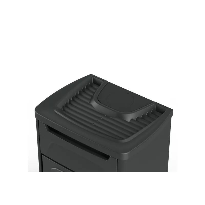 Le Larissa se distingue par ses façades, sa porte, son dessus et sa base en fonte émaillée, gages de robustesse et de longévité. Les côtés en acier peint en noir anthracite ajoutent une touche moderne et élégante à ce poêle, tandis que la large vue sur le feu, grâce au foyer entièrement en Nordiker, crée une ambiance chaleureuse et conviviale dans votre intérieur.