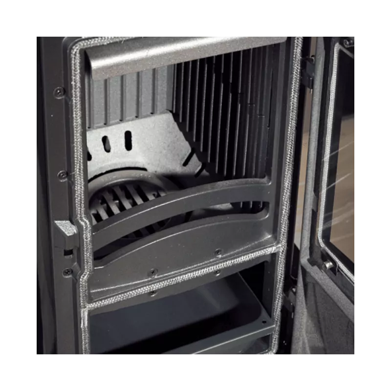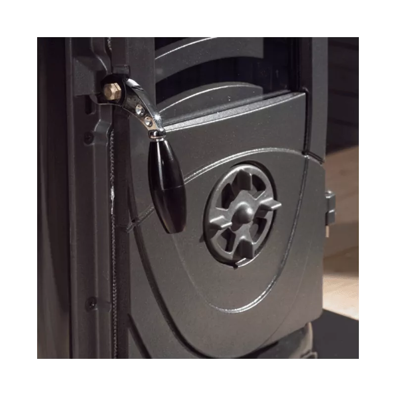Équipé d’un système de postcombustion, ce poêle recycle les gaz non brûlés pour réduire les émissions polluantes tout en augmentant son efficacité énergétique. Les réglages indépendants des airs primaire et secondaire permettent une gestion précise de la combustion, limitant la consommation de bois à seulement 1,5 kg/h. Un dispositif pratique permet également de secouer la grille pour un nettoyage facile et rapide.