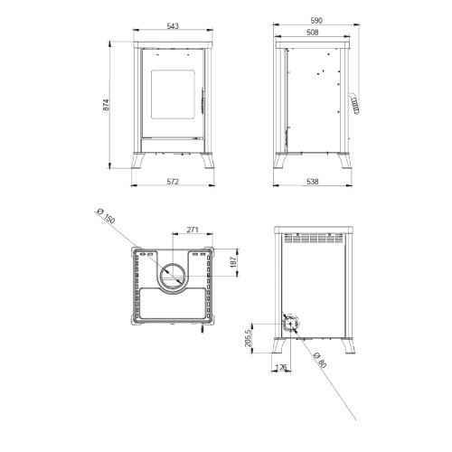 | Ø sortie de fumée (mm): | 150 |