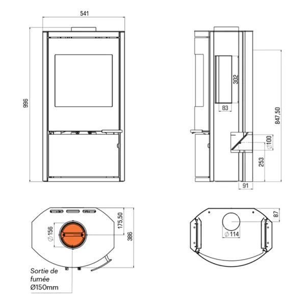 Sortie fumée Ø150 mm, Supérieure