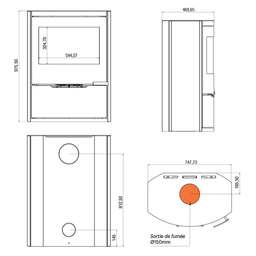 Poêle à bois Ravelli Minerva 8.5 kW Sortie Fumée Supérieure
