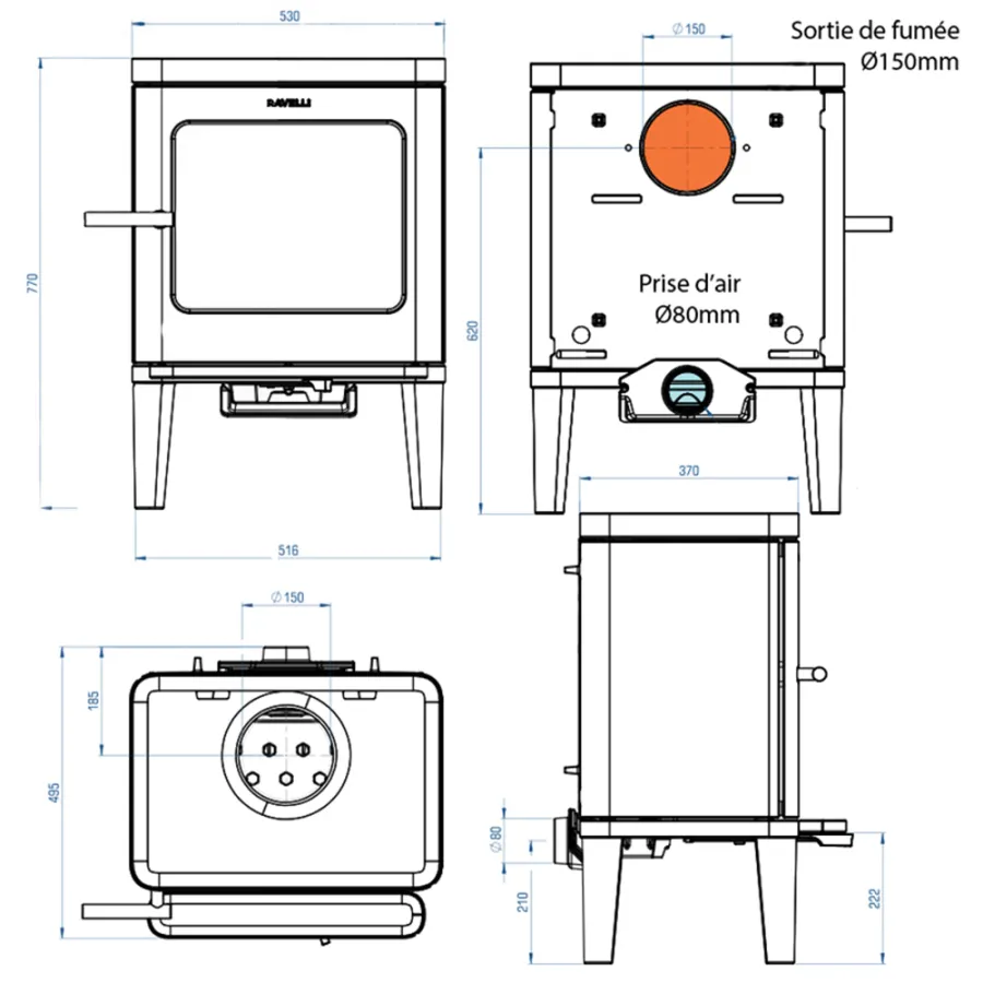 Poêle à bois Ravelli Thor 5 kW Sortie Fumée Supérieure