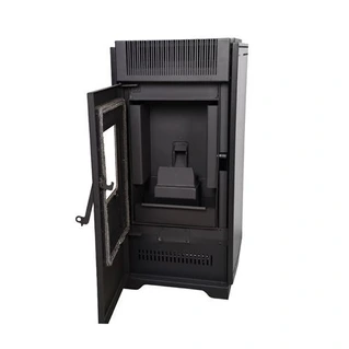 Double combustion, air ventilé, dimensions compactes, entretien facilité, programmable, creuset en fonte, sonde d’ambiance intégrée, très silencieux, bac à cendres amovible, sortie des fumées à l’arrière.