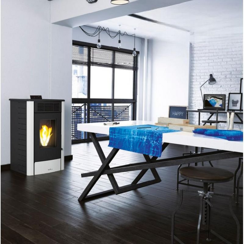 Le poêle à granules Rita de la marque BRONPI peutchauffer un volume d’environ de 200 m3 et possède un réservoir à pellets de 16 kilos.