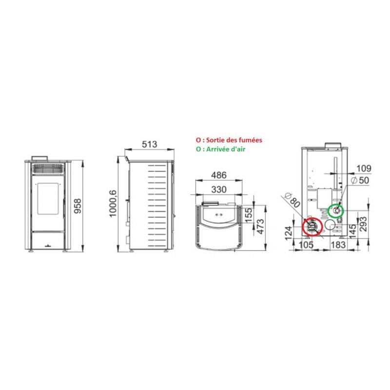 Descrption technique du Poêle à granules ventilé – BRONPI Rita 9 kW