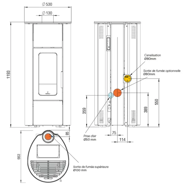 Tuyau de sortie des fumées Ø : 80.00 mm