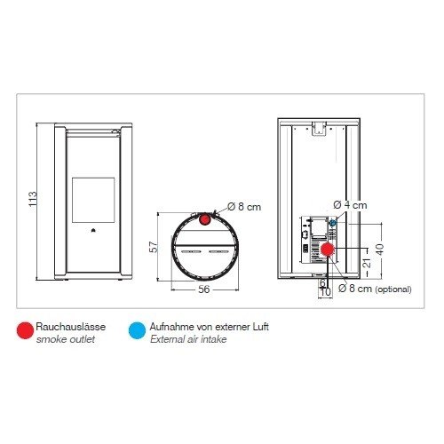 | Hauteur au raccordement de l’air de combustion (centre) (mm): | 400 |