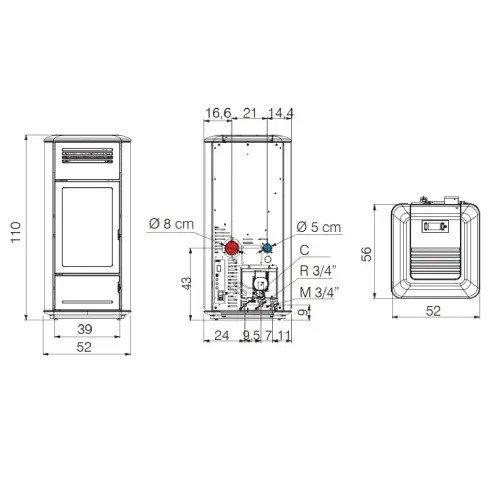 Poêle à granulés Edilkamin Milla H 15 Evo 14.8 kW Hydro.