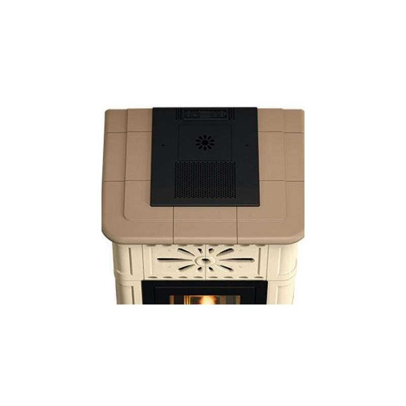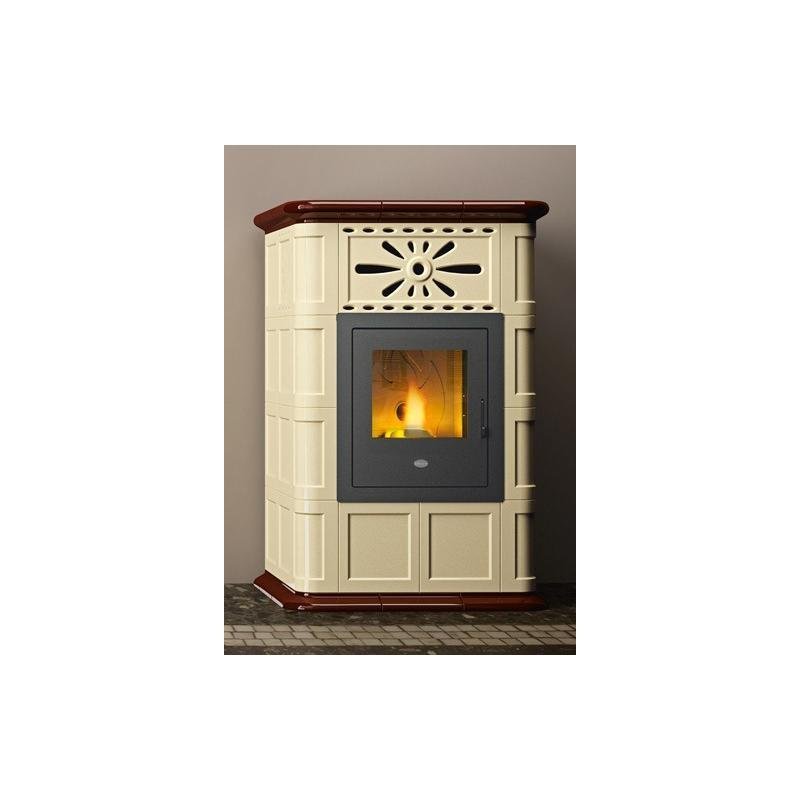 Le poêle à granules ventilé céramique Maria aux décorations recherchées a une puissance de 13.5kw et chauffe les espaces en leur conférant la touche classique et confortable qu’inspire depuis toujours le revêtement céramique.